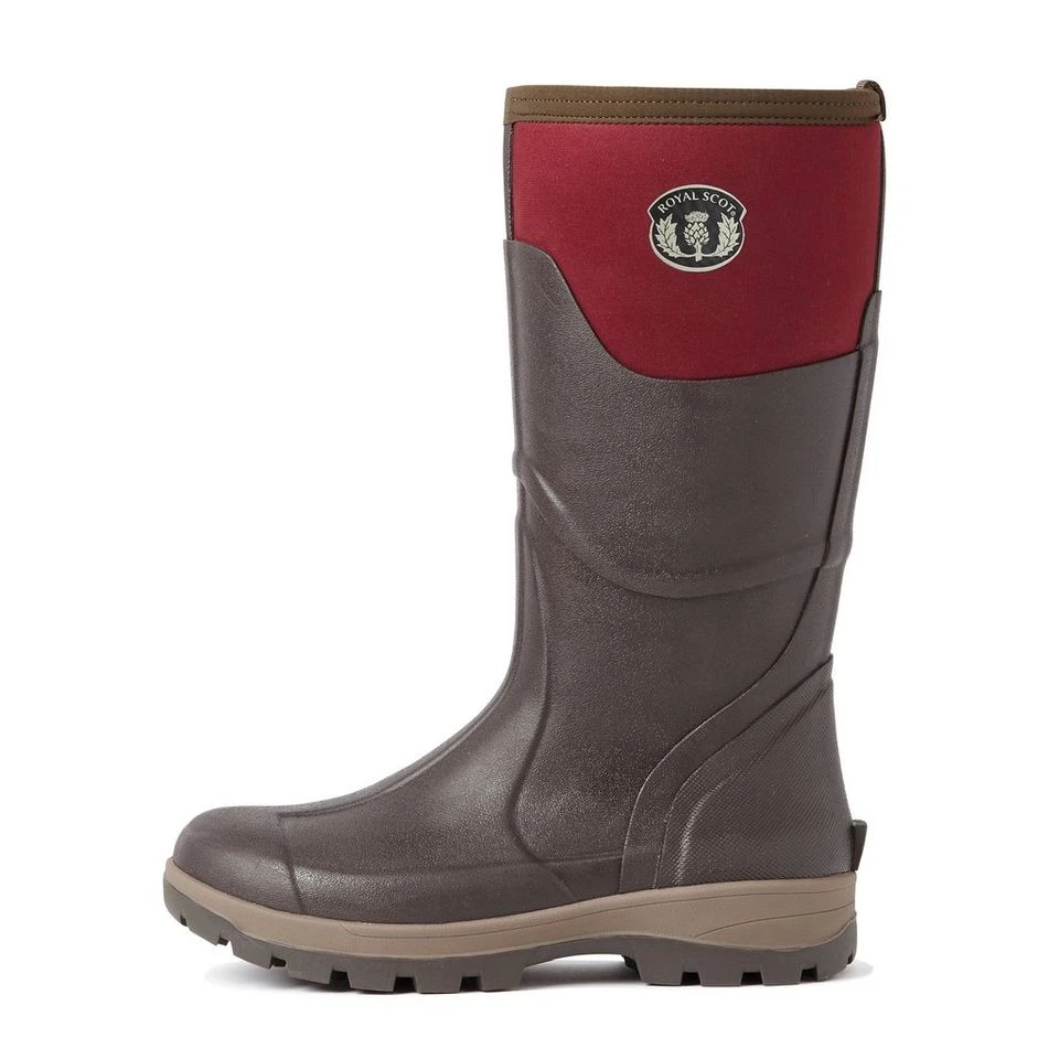 The Women’s Tay Boot from Royal Scot features a neoprene top and lining, forming a true multipurpose shoe which is lighter than traditional full-rubber construction. The material offers an enhanced fit and performance around the calf, while the natural rubber outsole provides secure grip and efficient mud release whether walking or riding. These riding wellington boots are suitable to wear with a variety of legwear options.